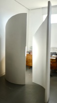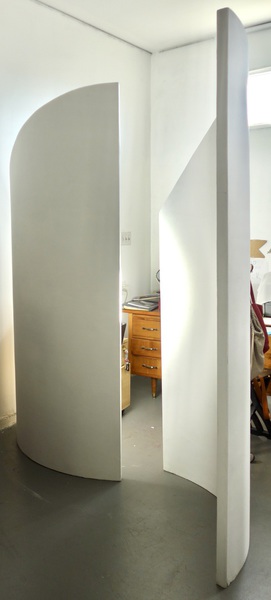 Sculptural walls-seven feet high-portable and lightweight. Very stable and contemporary